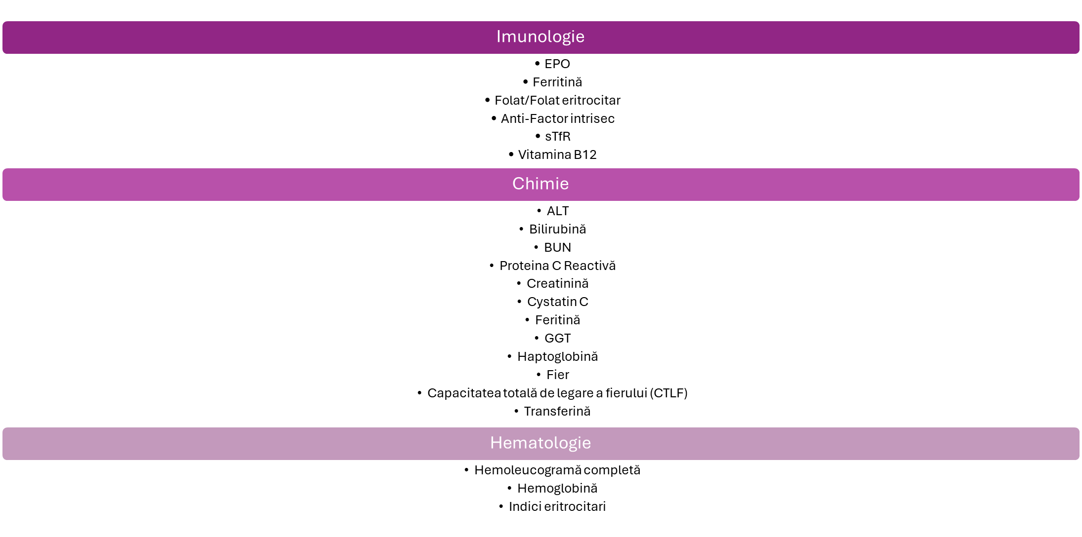 | Afecțiune | Parametru | IFA | ELISA | CLIA |